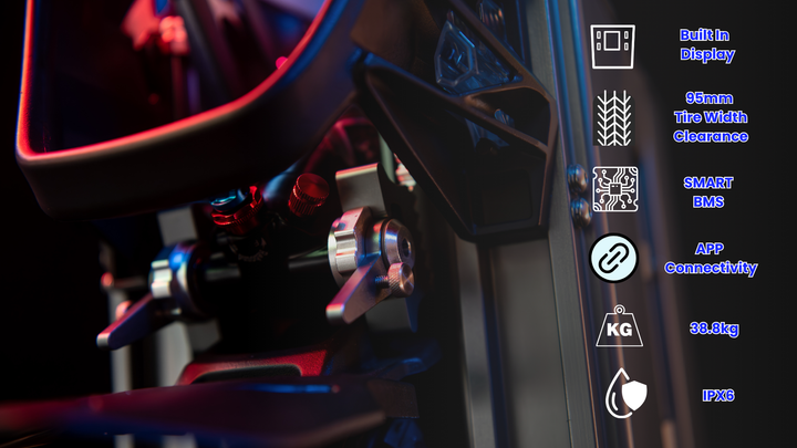 - Battery: 2,700Wh Samsung 50S (range up to 50 miles)